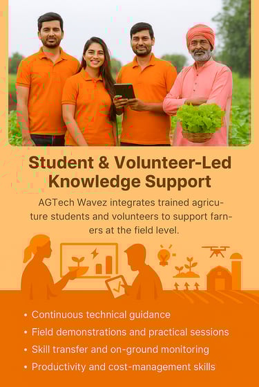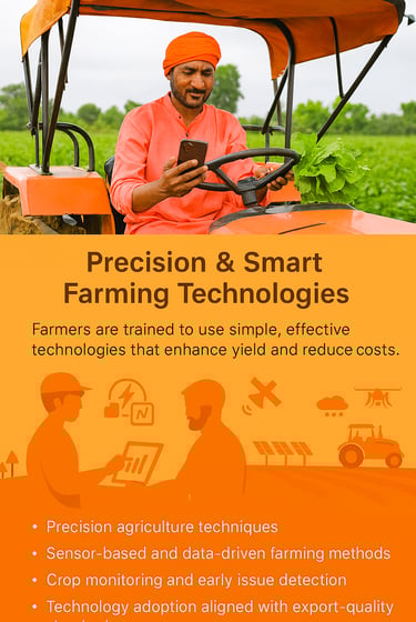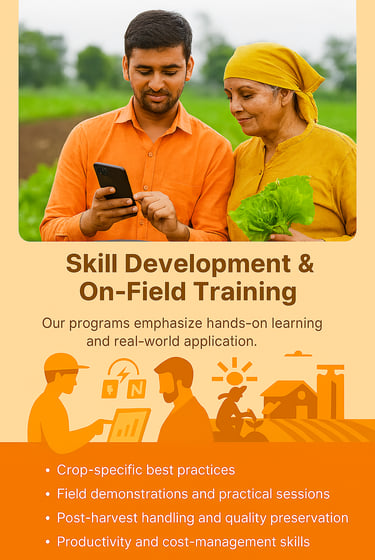 AGTech Wavez Pvt. Ltd. offers Sustainable Technology & Skill Training to help farmers adopt modern, eco-friendly, and efficient farming practices that improve productivity, quality, and long-term profitability. Our training programs focus on practical skills, appropriate technology, and sustainable methods that meet both environmental standards and global market requirements.